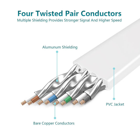 Cat 7 Ethernet Cable 25 Ft Shielded - Solid Flat Internet Network Computer Patch Cord, Faster than Cat5E/Cat5/Cat6 Network, Slim Cat7 High Speed LAN Wire with Rj45 Connectors for Router, Modem – White